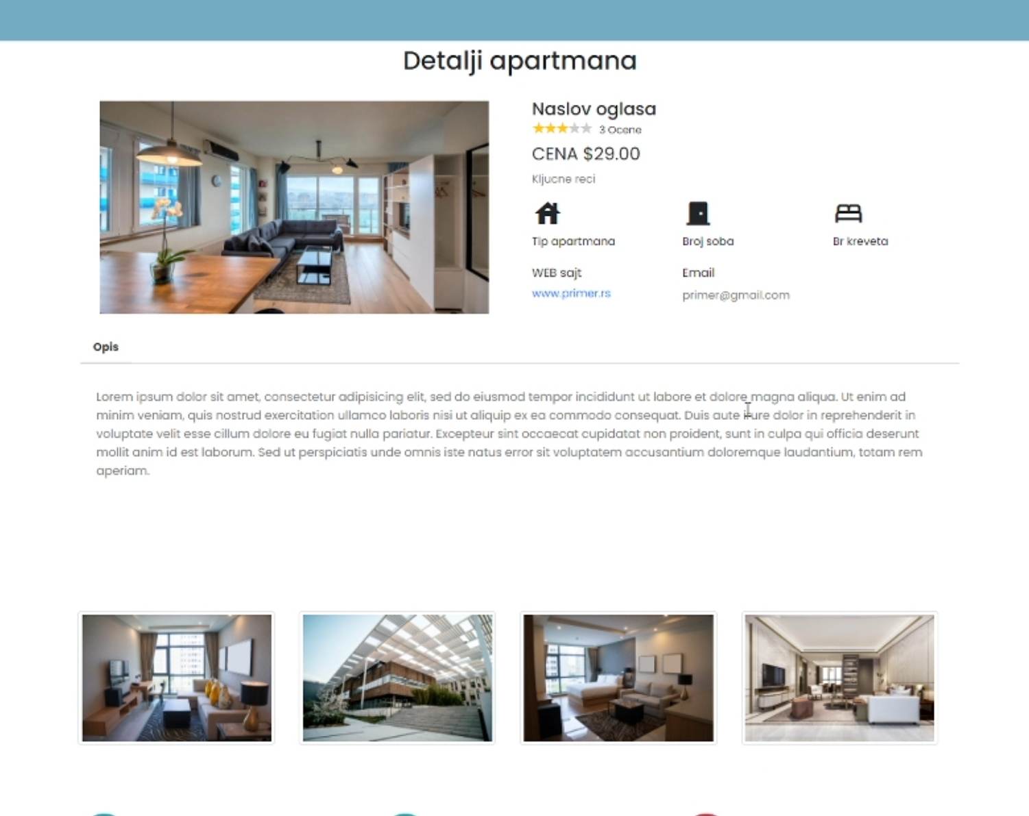 Some of those functionalities are registration, login, adding apartments, editing and deleting them, displaying apartments, searching, sorting, booking, sending messages and comments.